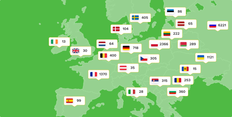 E100 - reteua cuprinde mai mult de 18000 de statii in 32 de tari Europene si tarile CIS